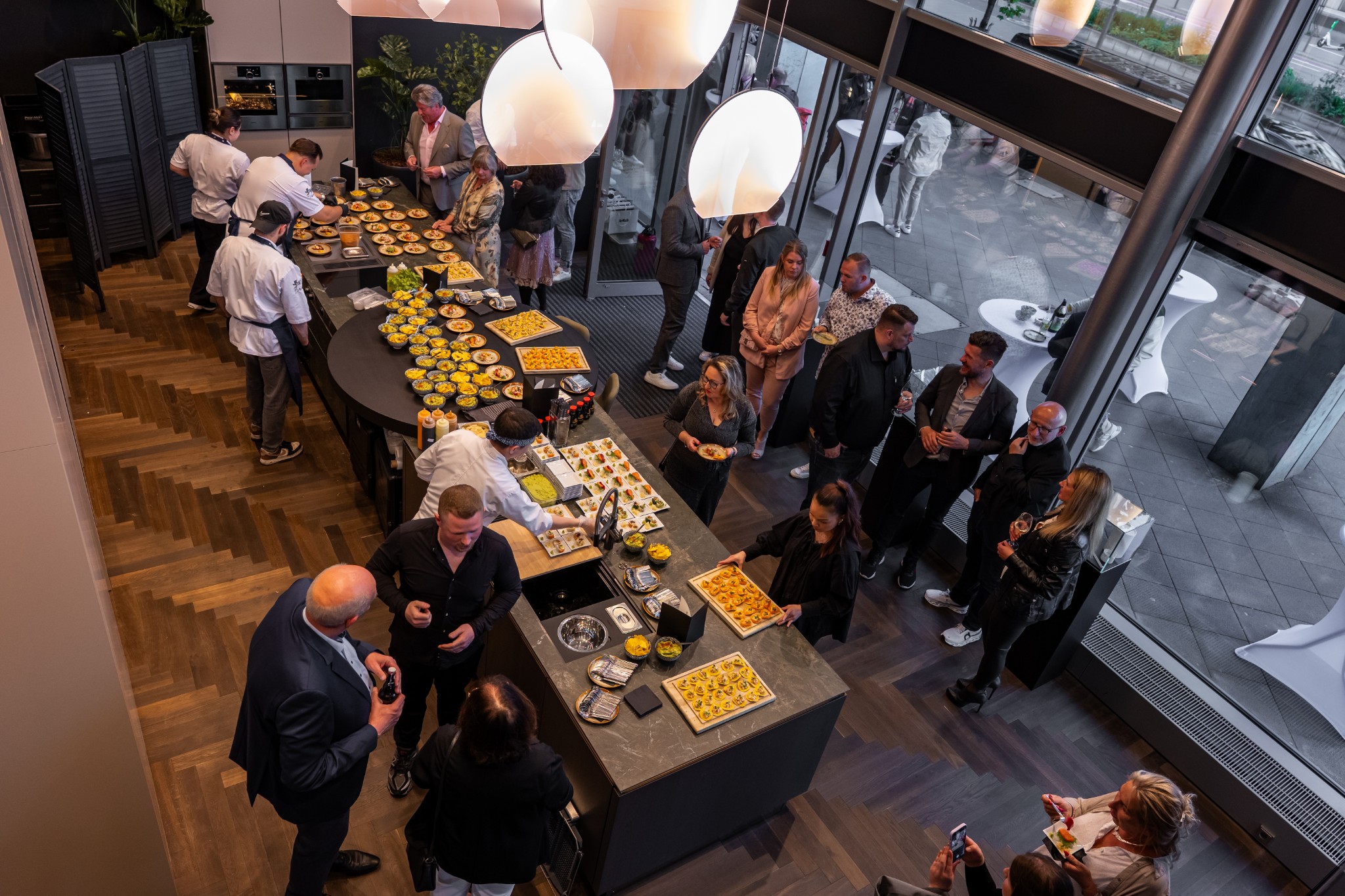 Seit Ende April ist SieMatic nun auch an einem der bekanntesten Standorte Frankfurts vertreten, an der Neuen Mainzer Straße, unmittelbar an der Untermainbrücke Richtung Sachsenhausen. Am 26. April öffnete das neue Exklusivstudio „SieMatic am Mainufer“ erstmals seine Türen und begeisterte mehr als 150 Gäste mit einer stilvollen Eröffnungsfeier. Neben dem beeindruckenden Ambiente des neuen Showrooms erwarteten die Besucher gleich zwei Premieren: die Präsentation der ersten SieMatic SG6 im Handel sowie die erstmalige öffentliche Vorstellung der neuen Backofenserie „Expressive“ von Gerätepartner Gaggenau.