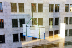 Haben Sie sich erstmal in ein Stück verliebt, dann versuchen wir alles möglich zu machen. So wie hier, als wir einen 2-türigen Kühlschrank per Kran in den zweiten Stock unserer Kunden geliefert haben.